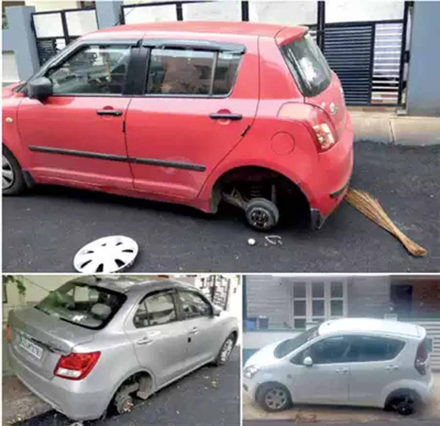 जानकारी के अनुसार, घटना सिटी कोतवाली थाना क्षेत्र के गीतांजली नगर कश्यप कॉलोनी की है. शातिर चोर देर रात मौके पर पहुंचे और आराम से कारों के टायर खोलकर फरार हो गए. जब सुबह वाहन मालिकों को घटना का पता चला, जिसके बाद पुलिस को सूचना दी गई. पीड़ितों की शिकायत पर पुलिस ने मामला दर्ज कर चोरों की तलाश में जुट गई है.