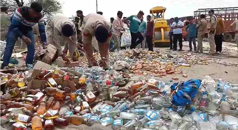 जिलेभर के अलग-अलग थाना क्षेत्रों में जब्त की गई करीब दो करोड़ की अवैध शराब पर राजनांदगांव पुलिस ने बुलडोजर चलाकर नष्ट किया. जिले के विभिन थानों से 10-12 वर्ष पुराने प्रकरणों में जब्त 40 हजार लीटर शराब को शहर के सीआईटी मैदान के पास नष्ट किया गया. इस दौरान एसपी मोहित गर्ग, कलेक्टर संजय अग्रवाल सहित सभी थानों के थाना प्रभारी मौजूद रहे.
