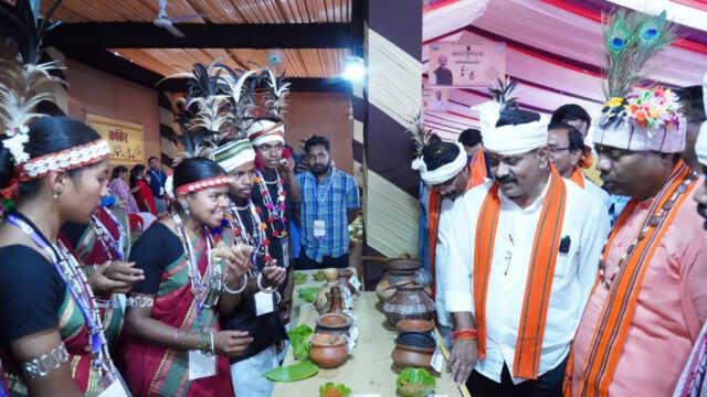 जनजातीय शिल्प एवं चित्रकला के अंतर्गत घड़वा, माटी कला, काष्ठ, ढोकरा, लौह प्रस्तर, गोदना, भित्तीचित्र, शीशल, कौड़ी शिल्प, बांस की कंघी, गीकी (चटाई), घास के दानों की माला प्रदर्शन किया गया। जनजातीय पेय पदार्थ एवं व्यंजन का प्रदर्शन-सल्फी, ताड़ी, छिंदरस, लांदा, कोसरा, जोन्धरा एवं मड़िया पेज, चापड़ा चटनी, सुक्सी पुड़गा, मछरी पुड़गा,मछरी झोर, आमट साग, तिखुर, बोबो इत्यादि का प्रदर्शन किया जा रहा है।