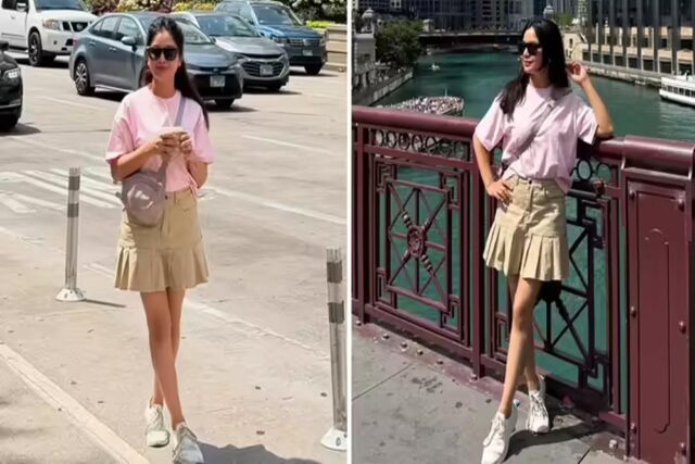 आउटफिट इतना परफेक्ट चुनने के बाद शुभांगी ने अपने लुक में एक भी कमी नहीं छोड़ी। तभी उन्होंने स्कर्ट और टी शर्ट के साथ आंखों पर काला चश्मा लगाकर पोज दिए। उनके चश्मा का स्कवायर फ्रेम है। जो कि हाफ क्लच बालों वाले हेयरस्टाइल के साथ चेहरे की खूबसूरती में चार- चांद लगाता दिख रहा है। और, लुक को बेस्ट बनाने के बाद शुभांगी विदेशी जमीन पर एक के बाद एक पोज देती नजर आईं।