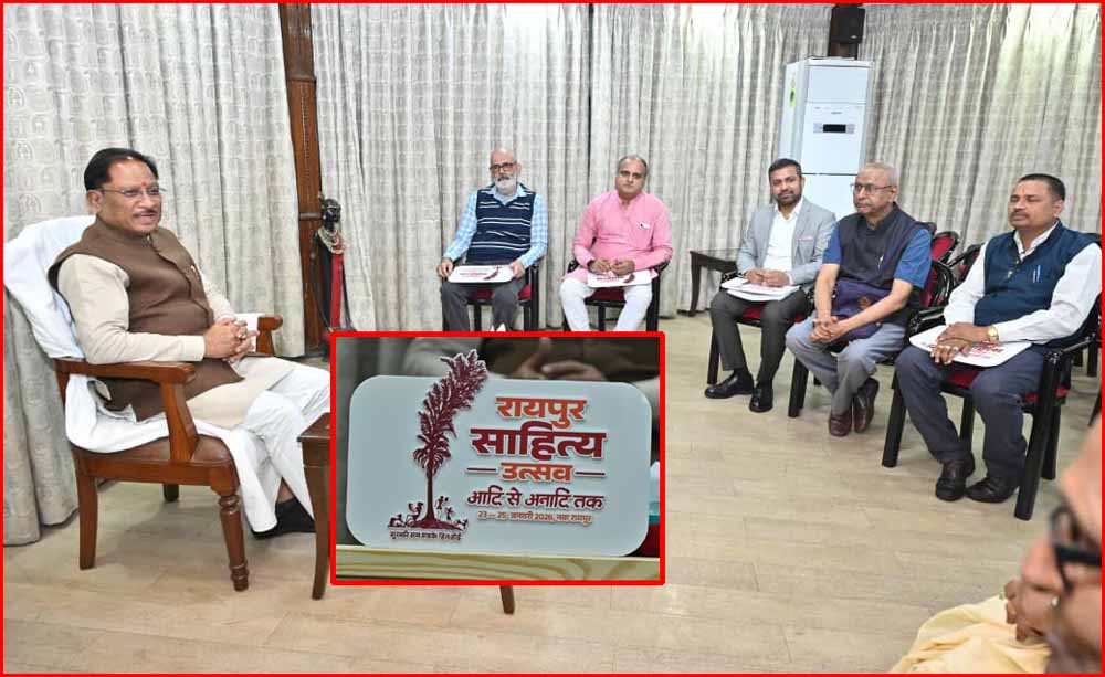नए वर्ष की शुरुआत के साथ छत्तीसगढ़ एक बार फिर साहित्यिक ऊर्जा से सराबोर होने को तैयार है। आगामी महीने रायपुर साहित्य उत्सव का आयोजन नवा रायपुर में 23 से 25 जनवरी तक होगा, जिसमें देश भर से 100 से अधिक प्रतिष्ठित साहित्यकार शामिल होंगे। राज्य स्थापना के रजत वर्ष पर मुख्यमंत्री विष्णु देव साय द्वारा इस आयोजन की परिकल्पना की गई थी। उनकी यह परिकल्पना अब साकार रूप लेने जा रही है। मुख्यमंत्री विष्णु देव साय ने आज अपने निवास कार्यालय में रायपुर साहित्य उत्सव के लोगो का अनावरण किया। इस अवसर पर मुख्यमंत्री के मीडिया सलाहकार पंकज झा, छत्तीसगढ़ साहित्य अकादमी के अध्यक्ष शंशाक शर्मा, जनसंपर्क विभाग के सचिव डॉ. रोहित यादव, वरिष्ठ साहित्यकार सुशील त्रिवेदी, डॉ. चितरंजन कर, गिरीश पंकज, डॉ. संजीव बक्शी, प्रदीप श्रीवास्तव और शकुंतला तरार उपस्थित थे।